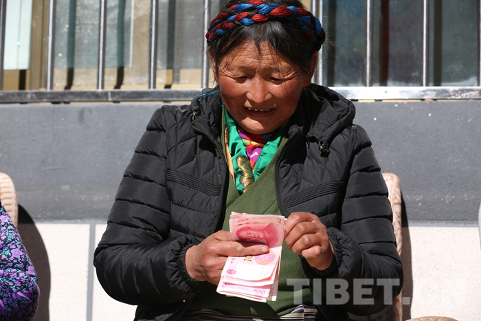 ? Le secrétaire de la branche du Parti, Bazhu, m’a dit hier soir que demain le village va distribuer de l’argent pour gérer les marchandises du Nouvel An. Je n’y croyais pas, mais j’ai re?u 1 000 yuans aujourd'hui ?, dit Danzeng Jieda, un résident d’une famille pauvre, du village de Jiama, en souriant.
