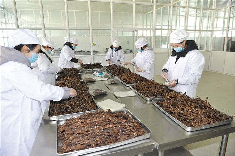 Le personnel de la société Tibetan Yak Co., Ltd. transforme des produits à base de viande de yak.