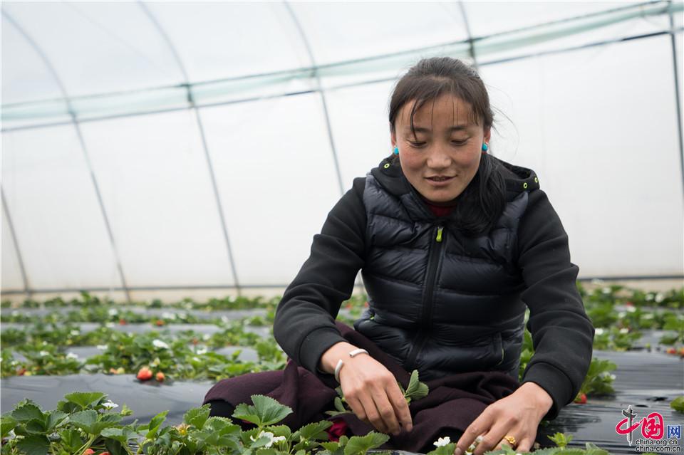 La pauvreté incite au changement. Après la construction de petites serres pour chaque foyer en 2003, les villageois y ont planté des radis et des choux et ont obtenu de bonnes récoltes. En 2007, les villageois ont réussi à planter plusieurs variétés de légumes dans les serres tels que le chou et le ma?s, et se sont mis à la culture de fraises à titre d’essai sur une petite partie des terrains, ce qui leur a permis de gagner des revenus dix fois plus élevés que la culture d’orge tibétaine sur une même superficie de terre.