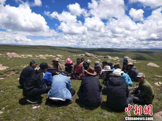 L'équipe d'assistance de la succursale Qinghai-Tibet de la compagnie ferroviaire de Chine en entretien avec des fermiers et éleveurs du village de Shengekagang.