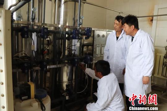 L'usine de traitement d'eau construite par l'équipe d'assistance de la succursale Qinghai-Tibet de la compagnie ferroviaire de Chine pour le village de Shengekagang.