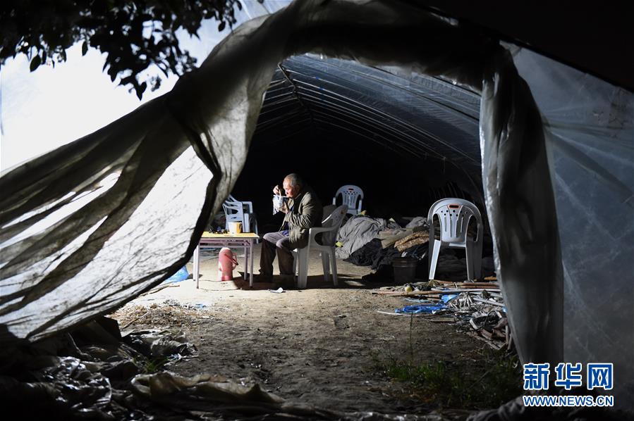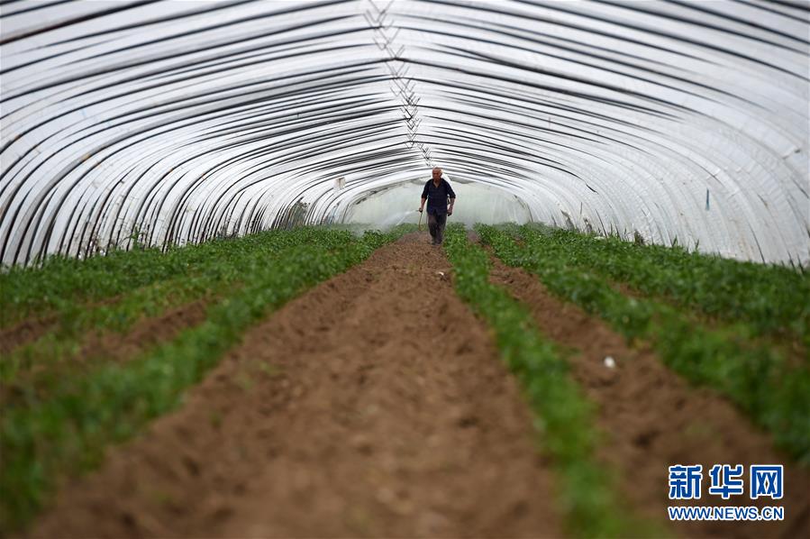 Dong Heqin travaille dans une serre, le 22 avril, dans le xian de Funan.