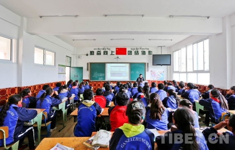 Le 24 avril, dans l'école Yucai, dans la zone pastorale isolée du district de Garzê, un élève de troisième année venu d'une zone pastorale reculée du district qui prenait plus de deux heures à cheval pour aller à l'école appelé Nima est assis dans la salle de classe. Il écoute avec sérieux.
