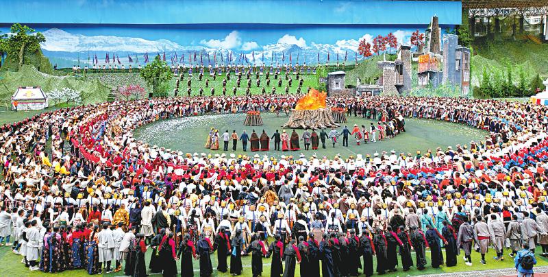 Les cadres et les masses de Maerkang danse le ? Guozuhang ? main dans la main.