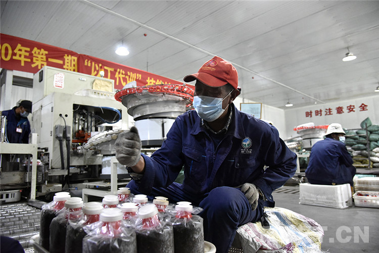 En photo : des ouvriers en train d'ensacher dans l'atelier d'emballage du parc de démonstration des biotechnologies.
