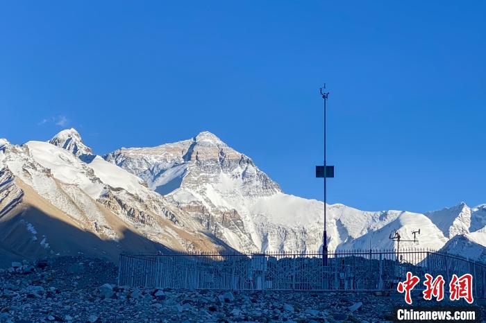 En photo : une station météorologique automatique sans pilote au pied du mont Qomolangma dans le district de Dingri, au Tibet.