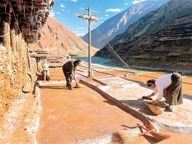 • L'unique paysage de sel qui sèche au soleil du canton de l'ethnie Naxi, à Mangkam, au Tibet