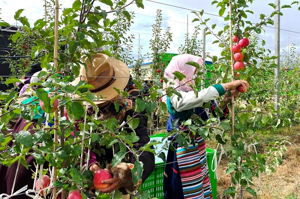 En photo : des personnes récoltant des pommes naines dans le comté de Gonggar.