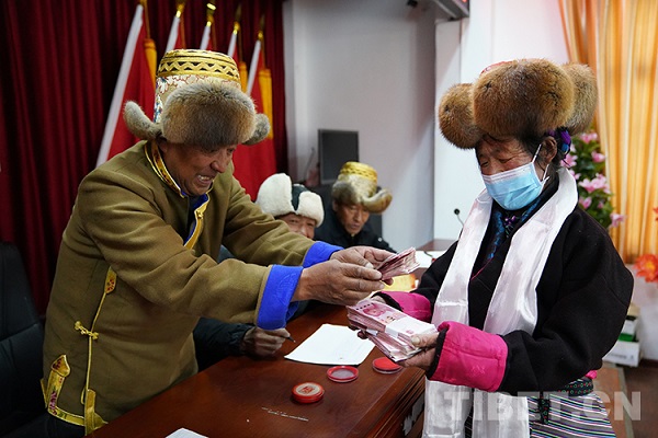 ? 44 565 yuans pour Phurbu Dasang, 38 750 yuans pour Dorje Tashi et 2 000 yuans pour Jamyang Drolma... ? Les villageois et les bergers appelés se sont présentés les uns après les autres pour recevoir leur premier dividende après être devenu actionnaire. Ce jour-là, la ferme d'élevage a distribué un total de 646 500 yuans en salaires et dividendes à 12 employés de paturage et 102 villageois qui ont acheté des actions.