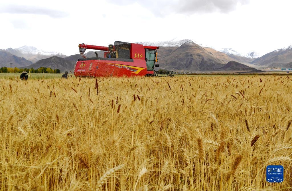 Photo prise le 12 octobre dans un champ de blé au xian de Linzhou, à Lhassa, chef-lieu de la région autonome du Xizang.