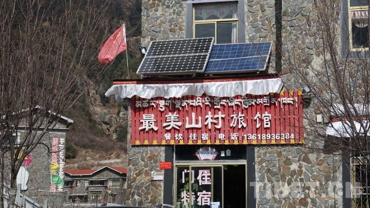 La devanture de la ? Plus belle auberge de village de montagne ? gérée par Ajia Drolma.