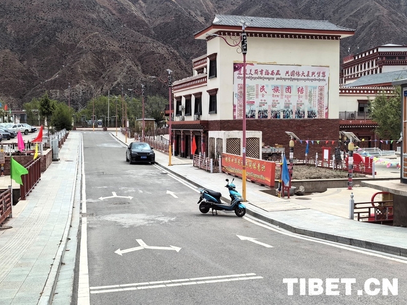 La photo montre les rues ordonnées de la commune de Gyitang.