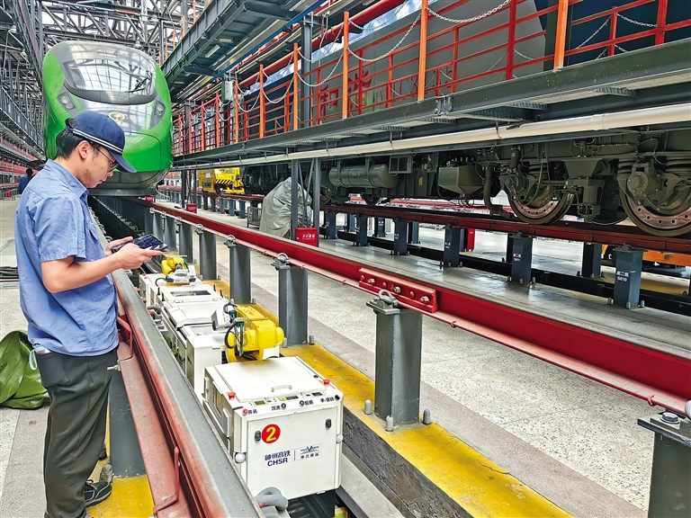 Le centre d'entretien des véhicules de Lhassa, situé dans le dép?t de locomotives de Golmud de la société China Railway Qinghai-Xizang Group Co., est une base de maintenance pour les trains à grande vitesse. Il est responsable de l'entretien quotidien, des réparations périodiques et des réparations spéciales des trains à grande vitesse. Pendant le pic de la saison estivale, lorsque tous les trains à grande vitesse sont en service, le dép?t a intensifié les efforts pour l'entretien et la préparation des trains. Il utilise des robots de détection intelligents pour effectuer des contr?les automatiques, des analyses et des diagnostics des voies du plateau et du dessous des trains, ainsi que pour identifier et signaler les défauts visibles des pièces. Cette méthode permet de passer de l'inspection humaine à l'inspection mécanisée.
