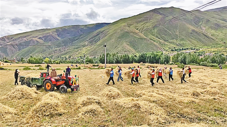 Pendant cette période, l'équipe de travail d'aide du district de Qonggyai a lancé une activité du service volontaire visant à aider les paysans pour la récolte d'automne. Les cadres de l'équipe de travail des résidents du district ont profité du bon temps et ont été mobilisés dans les champs du village de Dêqên avec la population locale en vue de garantir la récolte des grains vers l'entrep?t.
