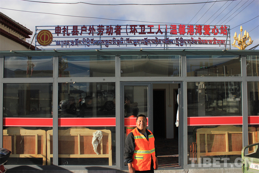Pour faciliter le travail et la vie des agents de nettoyage, le district de Xainza a spécialement construit une station de services pour eux. Zhou Shoufu, directeur adjoint du bureau de l'urbanisme du district de Xainza, explique que la station a été planifiée en avril, construite en mai et achevée fin juin. Les agents peuvent s'y reposer, boire de l'eau et laver leurs vêtements ; elle dispose aussi de bornes de recharge où ils peuvent recharger gratuitement leurs véhicules électriques.