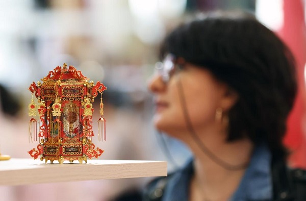 Une femme visite une exposition sur la culture chinoise au parc des expositions de la Porte de Versailles à Paris, en France, le 2 mai 2023. (Xinhua/Gao Jing)