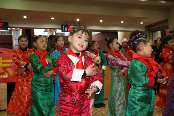 Le centre d’activités pour les jeunes de Lhassa a organisé quatre programmes, avec des caractéristiques ethniques fortes, créant une bonne atmosphère de fête, afin d’offrir leurs v?ux aux passagers.