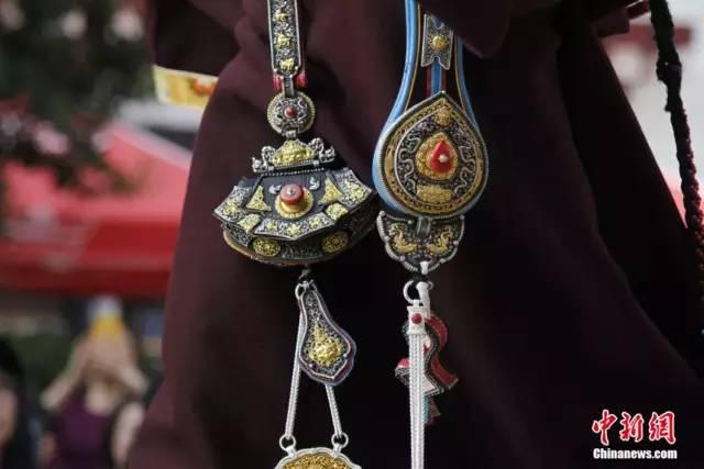 Le bo?tier Gawu (bo?tier bouddhiste) décoré de pierres précieuses.