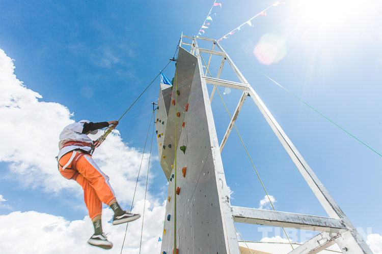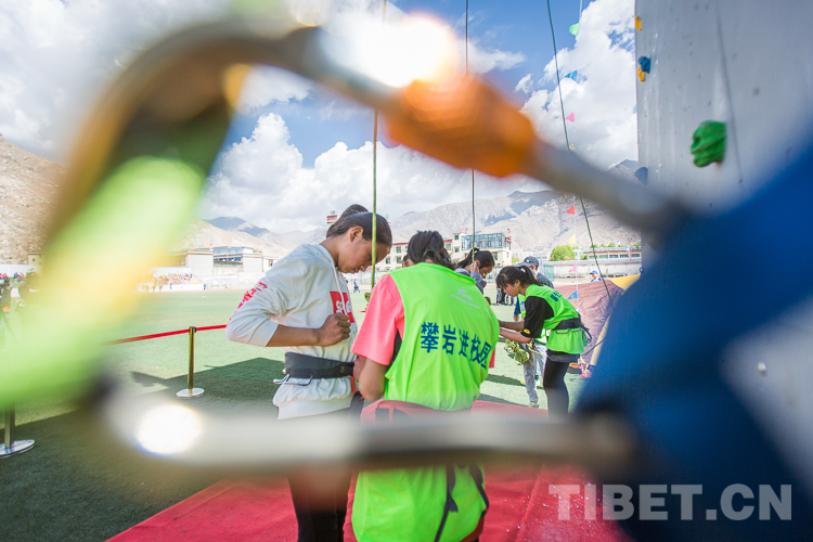 Devant les étudiants, les athlètes de l'équipe d'escalade du Tibet ont mis en place des compétitions de vitesse et de difficultés pour hommes et femmes. Par la suite, les élèves ont pu tester l'escalade sous l'égide et la protection des athlètes.