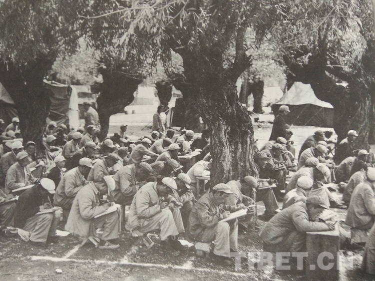 Les officiers et soldats de la 18ème armée étudiant le tibétain.
