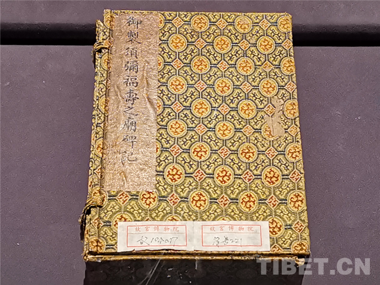 En photo : le livre sur l'histoire du monastère de Xumi Fushou (réplique), collecté par le Musée du Palais.