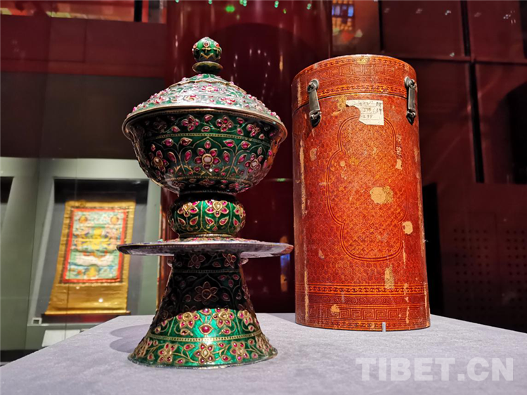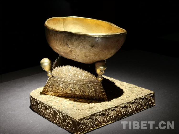 Le kapala a un couvercle, un support et une plaque de base en or. Il a été offert par le sixième Panchen Lama lorsqu'il a chanté des sutras au palais de la longévité et tranquillité le 27 octobre, la 45e année de Qianlong.