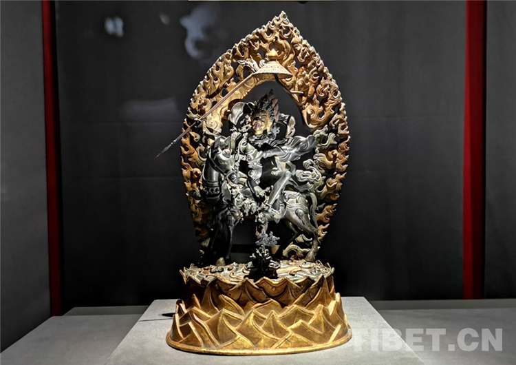 Palden Lhamo est une protectrice du Dharma très importante dans le bouddhisme tibétain. Le 27 octobre, la 45e année du règne de Qianlong, le sixième Panchen Lama a chanté des soutras pour l'empereur Qianlong dans le palais de la longévité et tranquillité, la Panchen Lama a offert cette statue de Palden Lhamo à l'empreur.