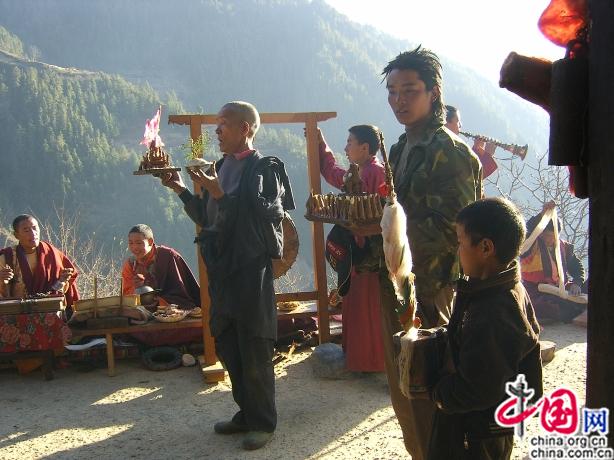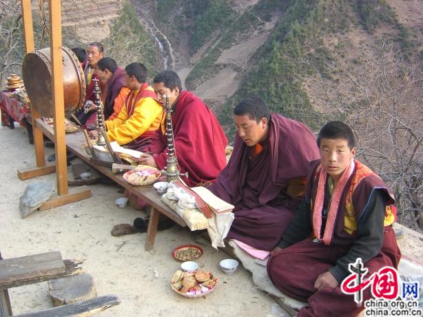 Aussi, selon leurs moyens financiers, les familles invitent un plus ou moins grand nombre de lamas à venir passer la journée, de l'aube au crépuscule, à réciter des prières pour le bonheur, la santé et le succès. On leur sert trois repas pendant cette tache. La journée se déroule sur le toit de la maison. On ne doit pas leur parler. Parfois, un lama entre dans la maison pour chasser les démons avec des incantations spéciales ; il faut donc laisser le passage libre.