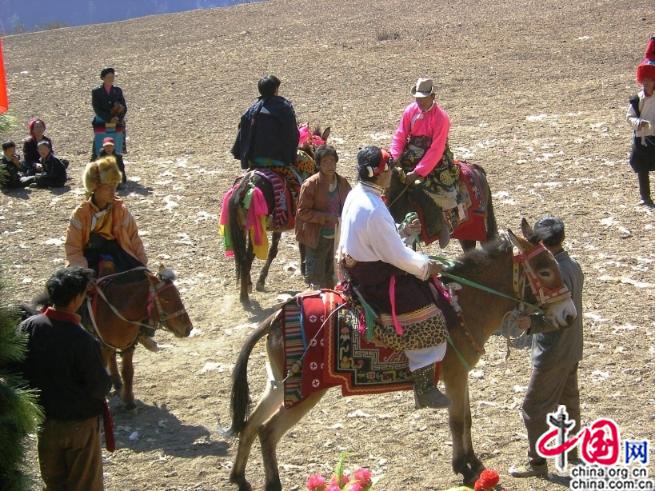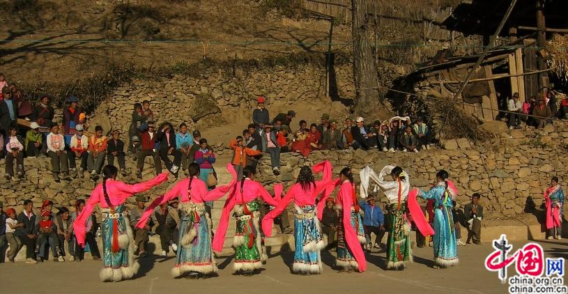 Le soir, nous avons dansé en groupe ; la maison était grande et pouvait accueillir tous les parents et voisins. Des spectacles de danse auraient lieu aussi sur la prairie, le lendemain, avec des hada de soie aux longues franges. Après le spectacle, un des danseurs – un superbe jeune homme – est venu m'offrir le hada qu'il avait utilisé pendant le spectacle. Les villageois le grondaient et cherchaient à l'éloigner. Pourquoi? C'est que les franges avaient balayé le sol et ramassé plein de feuilles sèches, presque indélogeables. J'ai bien ri, et conservé ce souvenir avec tous ses morceaux de feuilles. Il y avait aussi des courses de chevaux dans le village. Et bien entendu, nous sommes allés au temple faire tourner les moulins à prière.