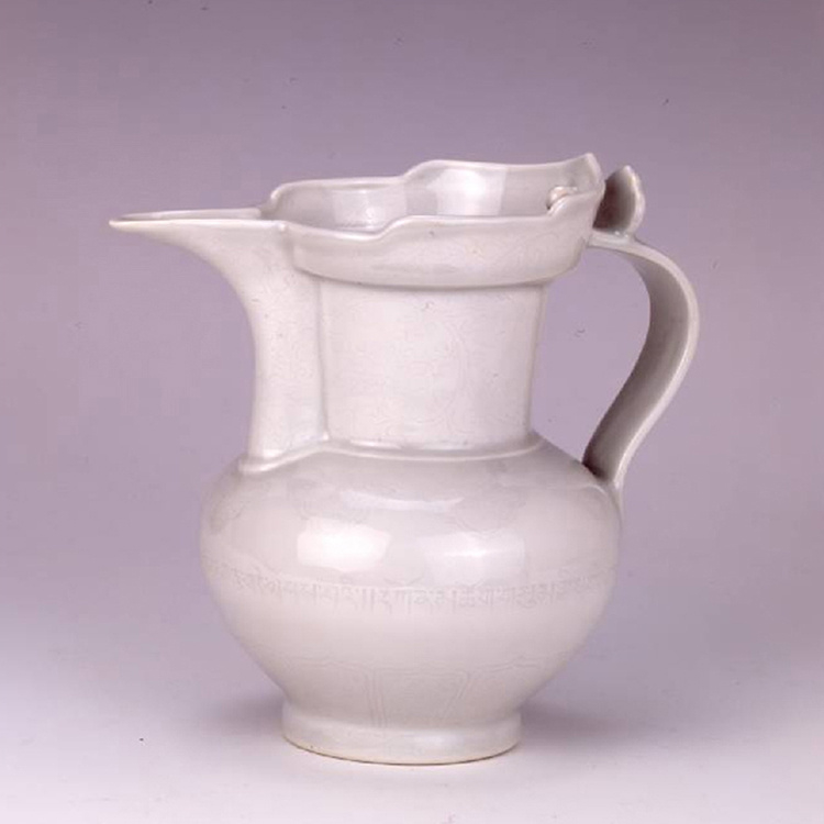 ? Le premier objet (de la collection du Palais du Potala) que je vais présenter aujourd'hui, c'est un pot de chapeau de moine de vernis blanc à fleurs voilées avec l'écriture tibétaine. Pourquoi est-il appelé un pot de chapeau de moine ? Parce que ce type de bouche a la forme d'un chapeau de moine, d'où son nom. ? Portant un masque et des gants, un chercheur de la section des reliques culturelles du Bureau de gestion du Palais du Potala, Pasam Pando, a animé la conférence. Il s'agit de la première relique culturelle dévoilée lors de la diffusion en direct du Palais du Potala ce jour-là.