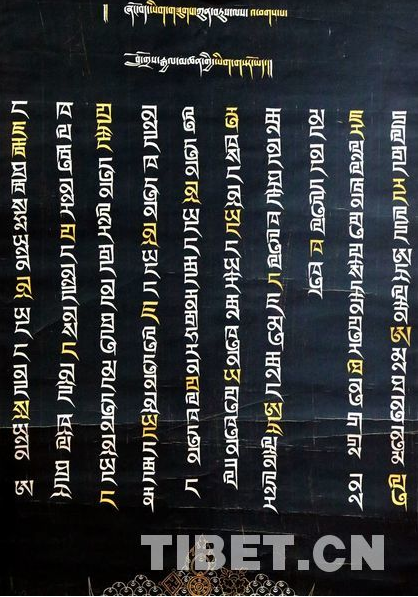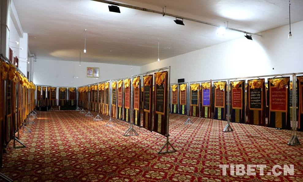 La ? Collection de Thangka à calligraphie tibétaine de Shang Shung ? est écrite par 80 calligraphes, organisée par le gouvernement du comté de Dêngqên. De janvier 2016 à juillet 2018, 218 types différents de polices de caractères tibétains de Shang Shung ont été utilisés dans la collection de calligraphie. Il y a 218 pièces de Thangka dédiées à la calligraphie tibétaine, 5 représentant des personnes, 2 utilisées en prélude et en conclusion. Soit 225 pièces de Thangka au total.
