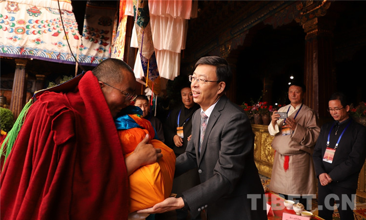 Sur les lieux de l'événement, Meng Xiaolin, vice-président de la région autonome du Tibet, a présenté des bandes de satin coloré, des fruits secs, des robes et des cadeaux aux moines dipl?més au nom du gouvernement populaire de la région autonome du Tibet. Le chef du Bureau des affaires religieuses de la région autonome du Tibet a distribué des aum?nes aux moines qui ont participé à la soutenance. Le responsable de la branche tibétaine de l'Association bouddhiste chinoise a prononcé un message de félicitations, offrant des khatas et décernant les dipl?mes aux moines dipl?més.