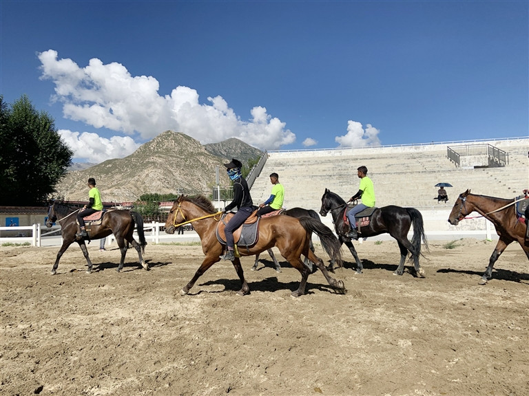 Le spectacle équestre traditionnel ethnique du Festival Shoton de Lhassa de 2020, coparrainé par le gouvernement populaire municipal de Lhassa et le Bureau des sports de la région autonome du Tibet, aura lieu à l'hippodrome de Beijiao, le 20 ao?t. Le matin du 17 ao?t, le journaliste est venu sur place pour ? explorer ? les lieux, alors que les athlètes et les chevaux participant à la traditionnelle performance équestre nationale du Festival Shoton se préparaient à l'entra?nement.