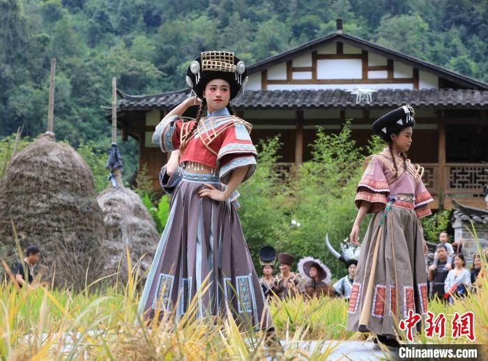Découvrez en images un défilé de mode organisé le 19 septembre dans un champ de riz sur le site touristique de Huanglongdong, à Zhangjiajie, dans la province du Hubei. (Photo : Wu Yongbin pour ChinaNews)