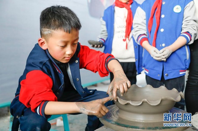 Baofeng est réputé pour la production de porcelaine Ru, l'une des cinq célèbres porcelaines de la dynastie Song (960-1279). Plus de 90 élèves ont participé dimanche 15 novembre à des travaux pratiques pour découvrir l'artisanat traditionnel chinois de la porcelaine Ru. (Photos : He Wuchang/Xinhua)
