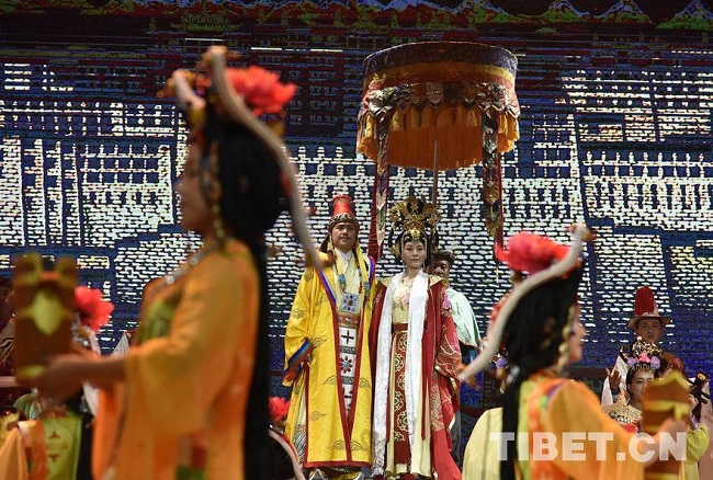 Cette adaptation du drame tibétain traditionnel ? La Princesse Wencheng ? raconte principalement une histoire au milieu du 7ème siècle après JC : le Tsenpo du Tubo Songtsen Gampo envoya l'ambassadeur du mariage Lon Tongtsen à la dynastie de Tang pour proposer un mariage ; les envoyés passèrent de nombreux épreuves, et en amenant un grand nombre de classiques et d'artisans qualifiés, la Princesse Wencheng enseigna les compétences le long du chemin et arriva finalement à Rasa (actuellement Lhassa) après avoir traversé des difficultés et des dangers ; et puis, les gens chantèrent et dansèrent pour célébrer ce mariage.
