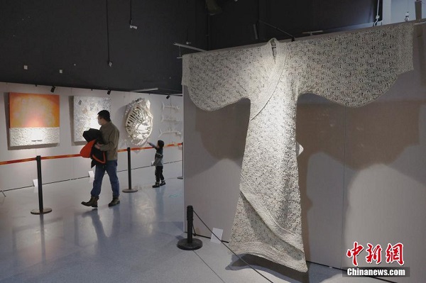 Le musée des sciences et de la technologie de Beijing propose actuellement une exposition consacrée à la fabrication manuelle du papier. Les visiteurs sont invités à découvrir le processus de la fabrication manuelle du papier à différentes époques ainsi que des ?uvres d'art créées à partir de papier. (Photo : Han Haidan/ChinaNews)