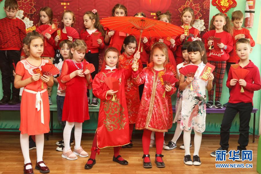 Des élèves en costumes traditionnels chinois posent pour une photo dans un centre d'enseignement des langues orientales à Kiev, en Ukraine, le 15 février 2021. L'école a organisé plusieurs activités amusantes pour aider les élèves à découvrir la culture chinoise et les coutumes du Nouvel An chinois. (Photos : Serge? Starostenko/Xinhua)