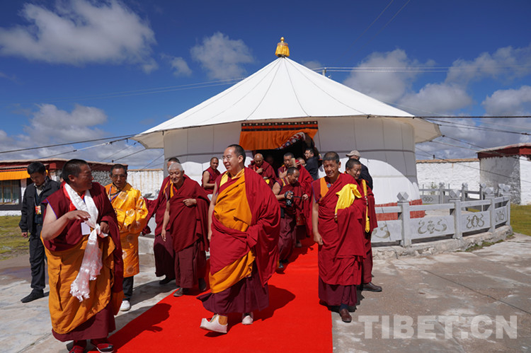 Quand le panchen-lama est arrivé au temple, les moines étaient pleins de joie, et l'ont accueilli avec les plus grands honneurs. Les moines ont peint des images ??de bon augure sur le sol, ont formé une file de cérémonie, sortant leurs parapluies jaunes et des br?le-parfums. Les conques et les instruments ont résonné à l'unisson, tout comme les tambours.