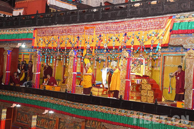 Dans l'après-midi du 26 novembre, le Panchen Lama a participé au débat pour l'obtention du dipl?me Kachen au monastère de Tashilhunpo. à 17h30, un éminent moine tenant un br?le-encens a invité le Panchen Lama à monter sur le tr?ne au deuxième étage du clo?tre. A 18h20, le moine à l'encensoir fit un geste, et le Panchen Lama a marché du tr?ne au siège vers le siège de débat.