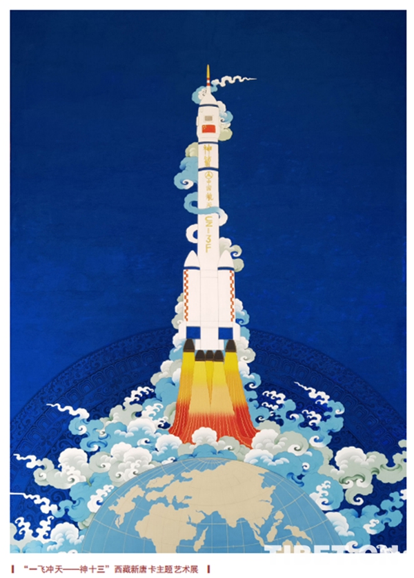 Le lancement réussi de Shenzhou XIII marque l'entrée de la Chine dans la puissance aérospatiale mondiale. La thangka, en tant que forme d'art de la peinture unique dans la culture tibétaine, est une ? encyclopédie ? tibétaine dont le sujet touche de nombreux domaines. C'est un patrimoine culturel immatériel précieux dans l'art populaire de la nation chinoise. Les nouveaux types de thangkas exposés cette fois s'intègre dans la société et la vie des citoyens avec une attitude légère, et cette nouvelle expression offre une approche rafra?chissante.