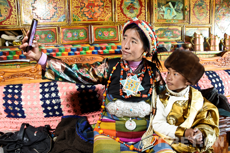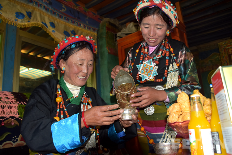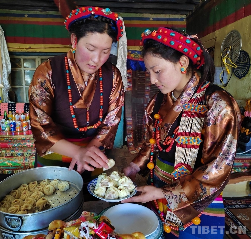 T?t le matin, la famille de Xialin du village de Gabai a enfilé ses costumes de fête, offrant des hadas au portrait des dirigeants accroché dans leur salon. Ensuite, les jeunes ont préparé du thé et porté des toasts aux a?nés. Toute la famille s'est assise ensemble, en mangeant et en discutant de la vie quotidienne, et leur maison était remplie d'une atmosphère festive.