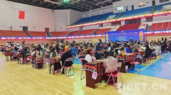 En photo : La scène de la ? Coupe de Zhongxin ? de Lhassa de 2023, le premier concours de roi d'échecs tibétains (échecs à double rois).