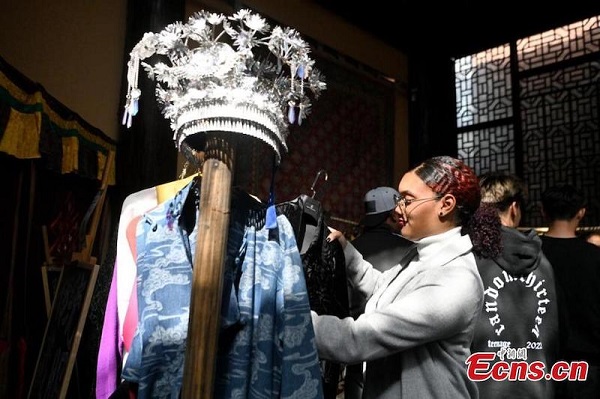 Un jeune homme sélectionne des vêtements tibétains lors d'un événement organisé dans la vieille ville de Dukezong, dans le comté de Shangri-la de la préfecture autonome tibétaine de Diqing, dans la province du Yunnan (sud-ouest de la Chine), le 26 juin 2023. (Li Jiaxian / China News Service)