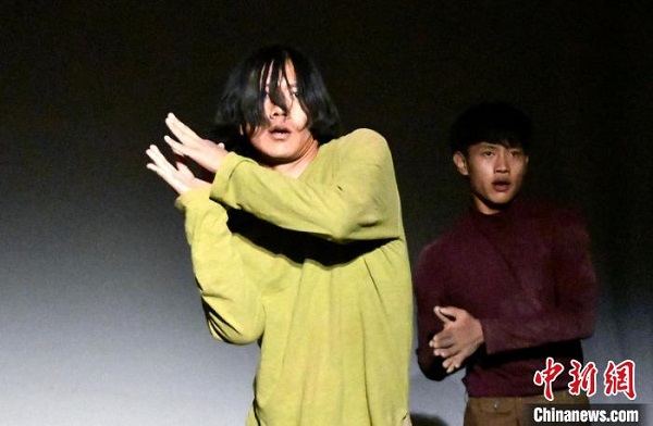 ? Dong ?, ? Dong ?, ? Dong ?, les trois coups de bol chantant espacés de cinq minutes ont marqué l'ouverture de la représentation de la danse théatrale ? Wu ? (signifiant ? rien ? en chinois), qui a pour thème principal la ? Terre ? et fait partie de la saison artistique du théatre Diansa du Centre Jieguan du Tibet, le soir du 26 ao?t. La scène encastrée est remplie de sable. Après une récitation en tibétain, les projecteurs se sont posés sur la danseuse, marquant ainsi le début de la performance.