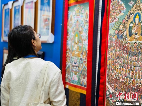 • Un héritier du patrimoine culturel immatériel a peint des thangkas lors d'un concours national pour montrer la culture ethnique