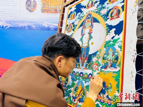 Récemment, dans la zone d'exposition du Qinghai de l'exposition et l'échange de compétences des artisans ruraux dans le cadre du deuxième concours national de compétences professionnelles pour la revitalisation rurale, Gawa Kunden Tsering, un héritier représentant au niveau provincial du projet national de patrimoine culturel immatériel ? Thangka tibétaine (Thangka de Hualong) ? et l'un des premiers artisans ruraux célèbres du pays, a peint des thangkas pour montrer toute la beauté de la culture ethnique.