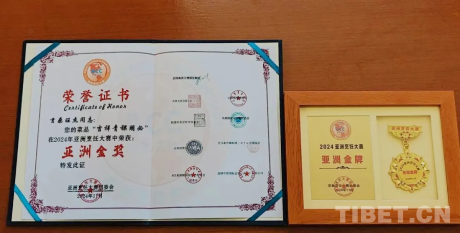 Du 15 au 17 novembre, l'? Exposition de la gastronomie asiatique ACE 2024 et Compétition culinaire d'Asie ? s'est tenue à Jinan, dans la province du Shandong. Lors de cet événement, Kunsang Wangyal, enseignant à l'école technique de Shigatsé, a remporté le ? Prix d'Or d'Asie ? grace à son plat intitulé Pengbi d'orge de bon auspice.