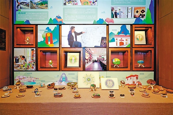 L'exposition présente également des ?uvres de peinture sur pierre réalisées par les villageois de Pangda sous la direction de Sonam Tsering. Les pierres utilisées, prélevées à Yadong, témoignent du profond attachement des habitants des villages frontaliers à la protection et à la prospérité de leurs terres.
