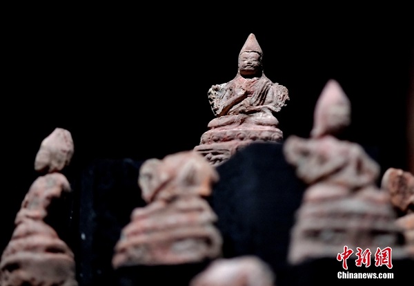 Le mot ? tsha tsha ? est la translittération tibétaine du sanskrit, qui signifie ? réplique ?. Il s'agit d'une petite statue de Bouddha faite avec un matériau tel que l'argile molle qui est comprimé dans un moule dédié, puis pressé pour obtenir sa forme finale, ce qui est un art unique du moulage de sculptures en argile au Xizang. Les photos du 2 mars montrent une salle d'exposition de la culture tibétaine de tsha tsha dans la banlieue nord de Lhassa, au Xizang, où des visiteurs présentent les tsha tsha qu'ils ont faits.
